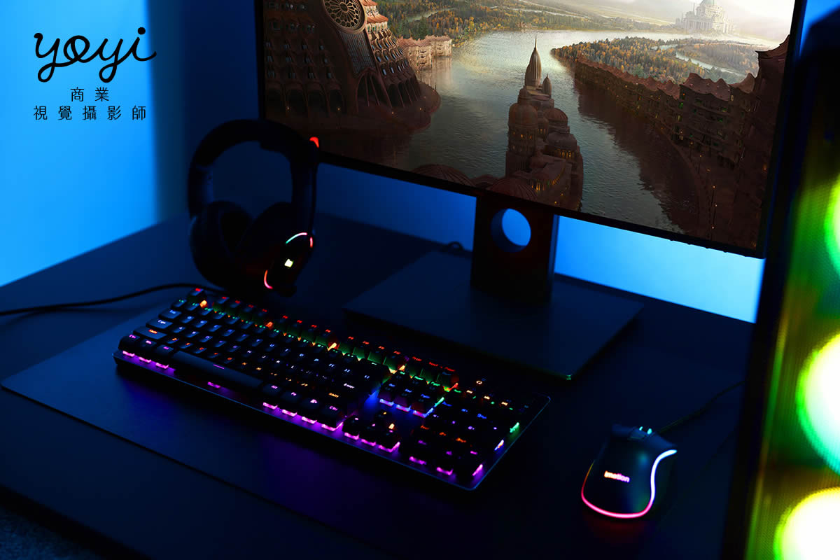 電競商品攝影|電競螢幕鍵盤耳機 RGB 炫彩情境攝影 1